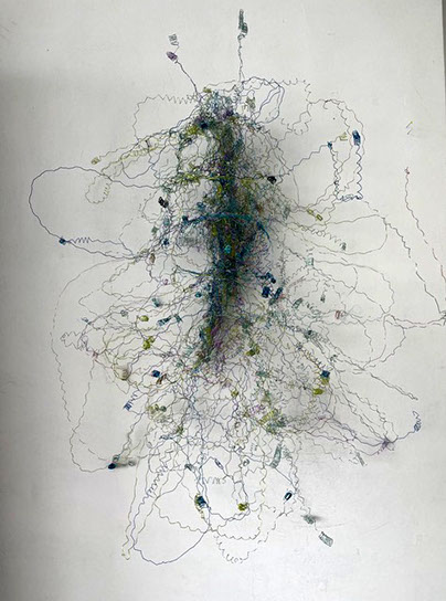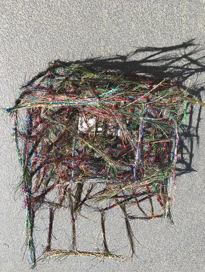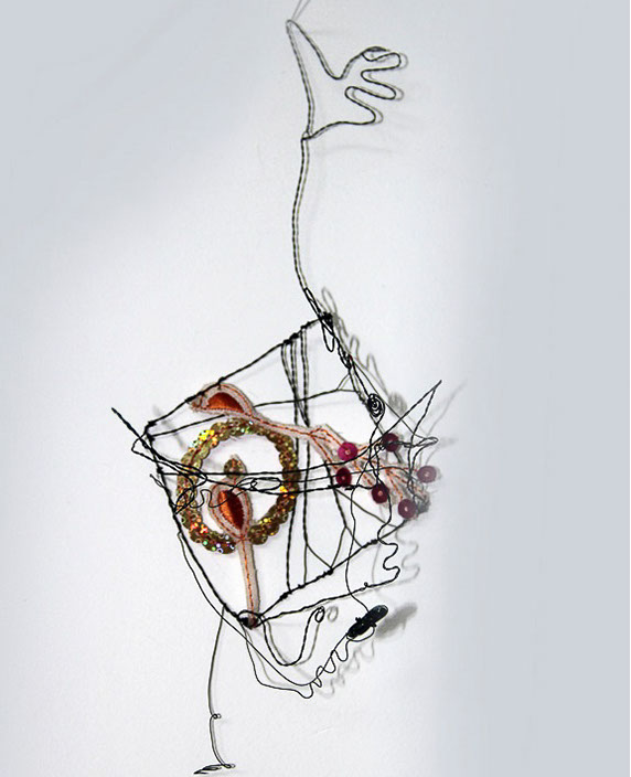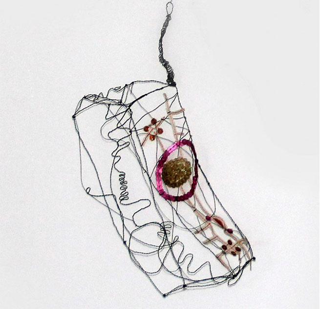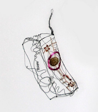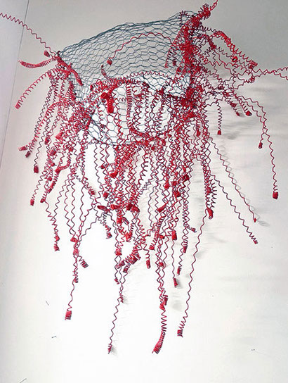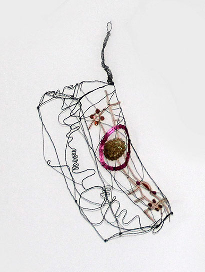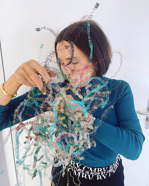 Dass Rosmarie von Scarpatetti sich von der zweidimensionalen Leinwand – sie war lange in der Malerei zu Hause – in den dreidimensionalen Drahtraum begeben hat, ist eigentlich einem Zufall geschuldet. Inmitten leerer Champagnerflaschen anlässlich einer ausgelassenen Silvesternacht blitzen ihr die Metallgeflechte der Korkenhalter entgegen. Fasziniert von der Elastizität der geometrischen Form sammelt sie die achtlos rumliegenden Teile ein und hegt sie bis heute als Inspirationsquelle und Material-Muster. «Das Handwerkliche schlummerte schon lange in mir …».