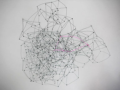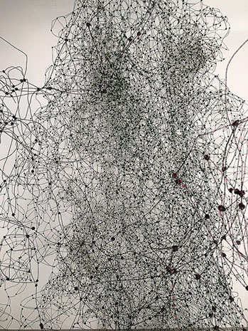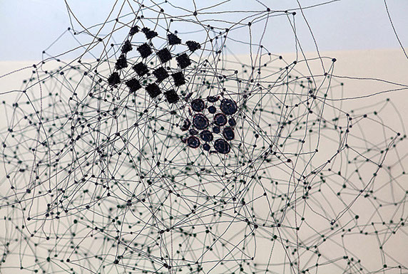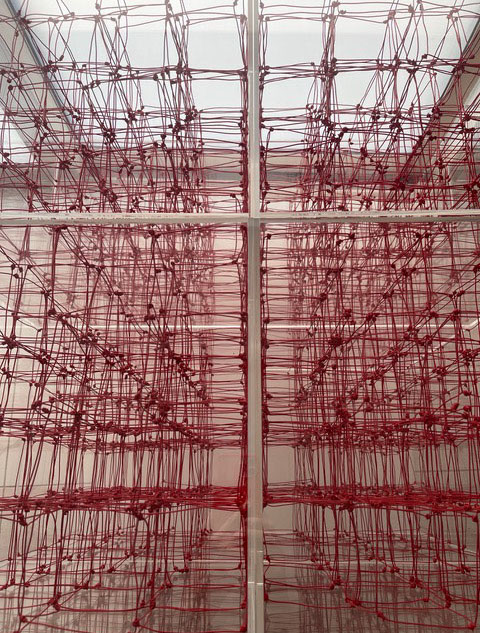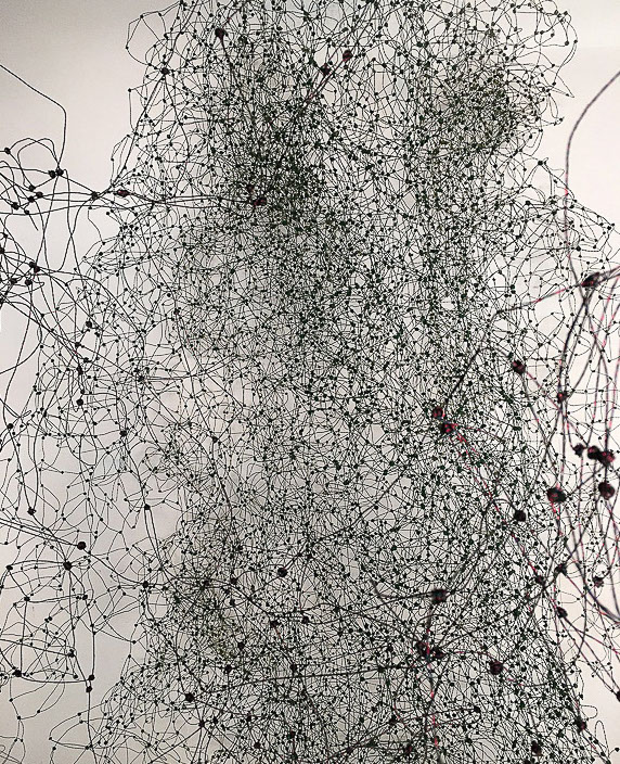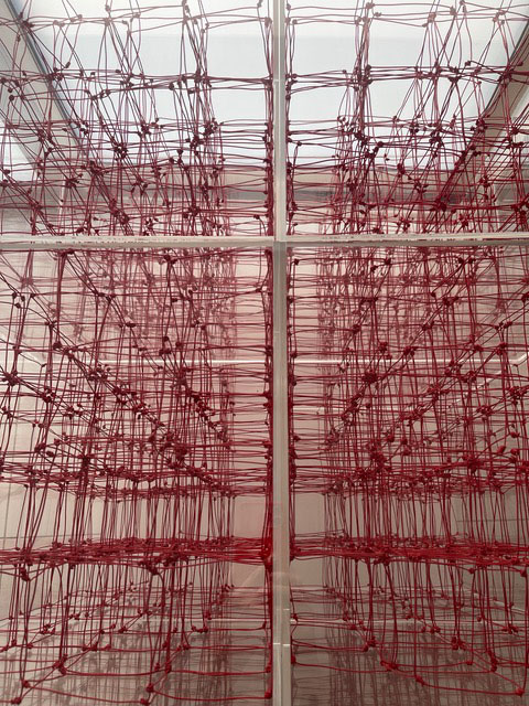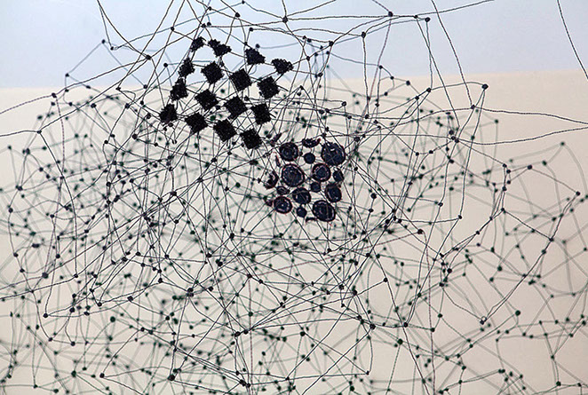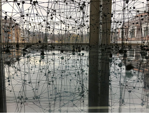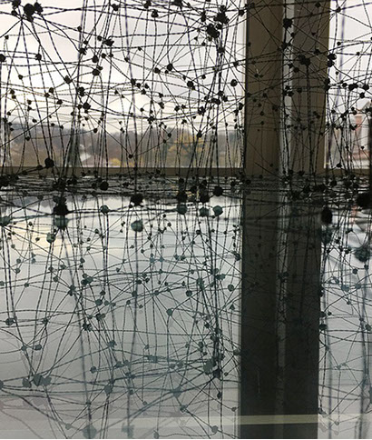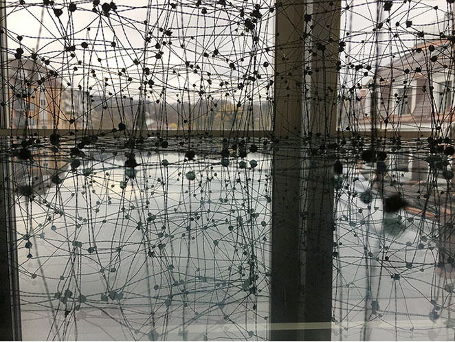 Gestalterisch bespielen von Scarpatetti’s Geflechte in ungewöhnlich poetischer Fantasie die auszustellenden Räume, vorstellbar als Netze von Transparenz zugleich mit einer unfassbaren Dichte. Was könnte da näher liegen, den Kerngedanken dieses Werkes als brandaktuellen Bezug zur heutigen vernetzten Welt in Zusammenhang zu bringen?